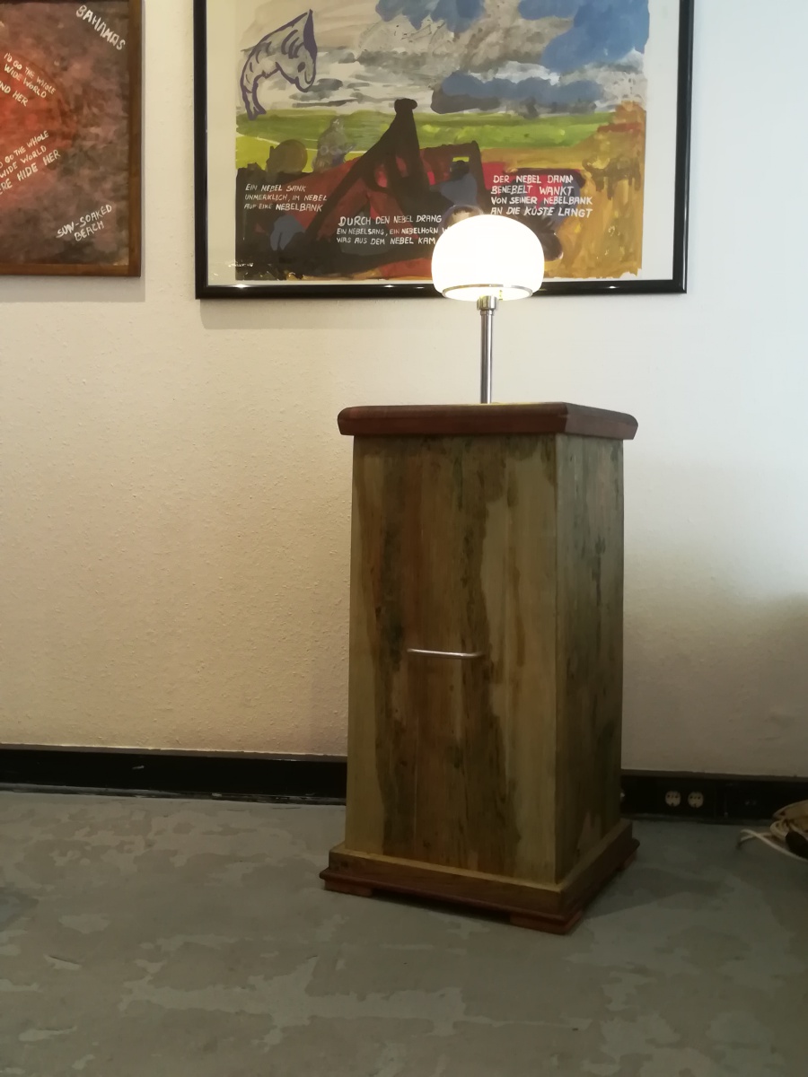 Das Rednerpult ist ein weiteres Unikat von dem Hamburger Künstler Josef Greiner. Seine Skulpturen sind gleichzeitig Kunst und Möbel. Ausstellung zur Zeit in der Galerie ShrineArt.